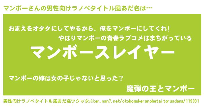 | 女子向けラノベタイトル風あだ名 | 『婚約破棄系悪役マンボーに転生したので、保身に走りました。』 |