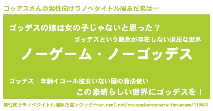 | 女子向けラノベタイトル風あだ名 | 『ゴッデス恋絵巻』『ゴッデス様がみてる』 |