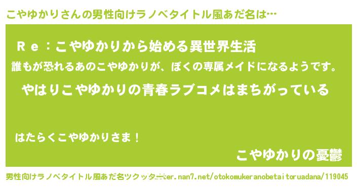 こやゆかりさんの男性向けラノベタイトル風あだ名をツクッター!