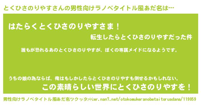 とくひさのりやすさんの男性向けラノベタイトル風あだ名をツクッター!