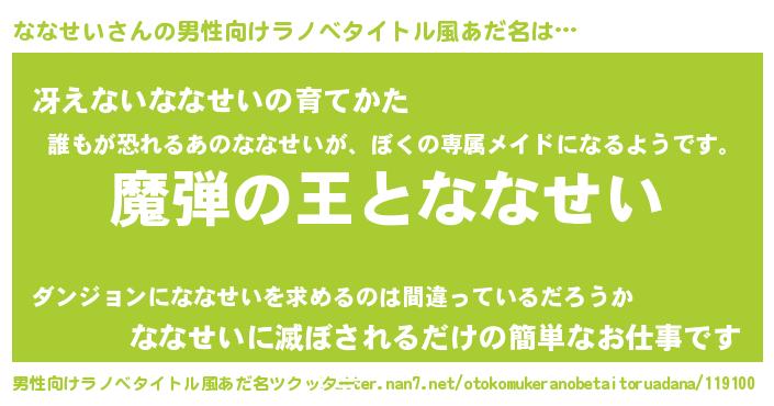 | ヒーロー風カッコイイあだ名 | 『仮面ナナダー』『ネオナナセイ』 |