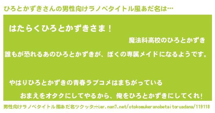 | ヒーロー風カッコイイあだ名 | 『ネオヒロトカズキ』『暗黒騎士ヒロ』 |