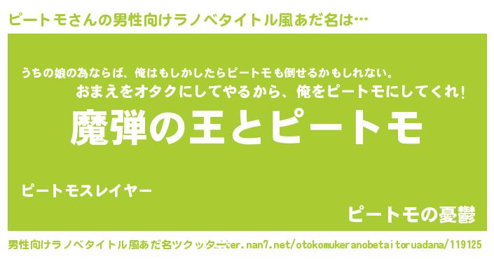 | 意味不明あだ名 | 『住所不定無職ピートモ(65歳)』 |