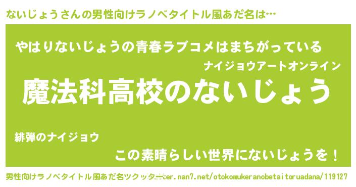 | 女子向けラノベタイトル風あだ名 | 『ないじょうなんてお断りですっ。』 |