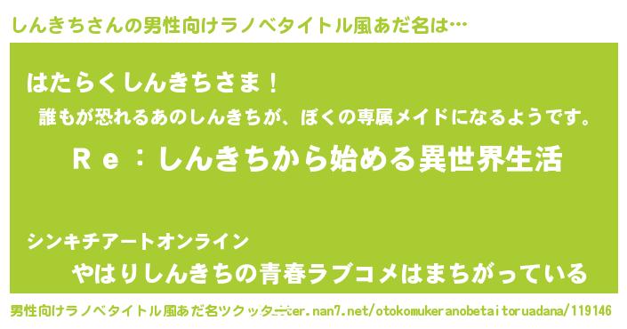 | 女子向けラノベタイトル風あだ名 | 『しんきちストレイドッグス』 |