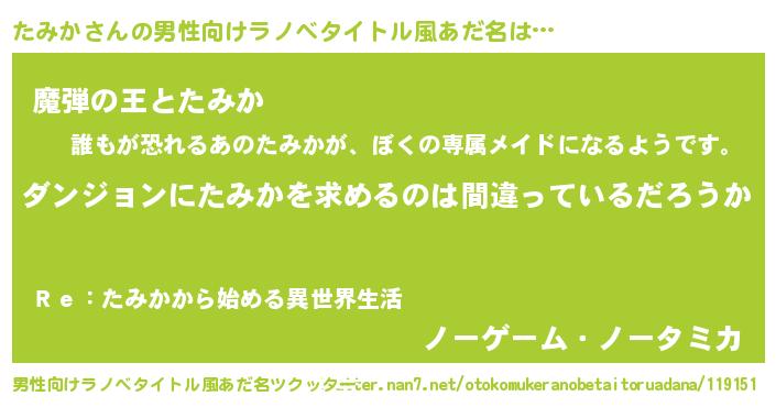 | 女子向けラノベタイトル風あだ名 | 『たみかは平凡を望む』『たみか恋絵巻』 |