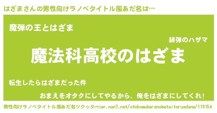 | ヒーロー風カッコイイあだ名 | 『ウルトラ戦士ハザマ』『仮面ハザダー』 |