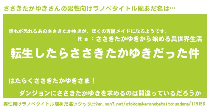 | ヘコむあだ名 | 『ささきたかゆき(笑)』『ささっちょ』 |