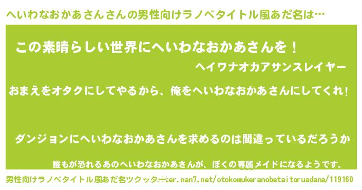 | ヘコむあだ名 | 『へいわなおかあさん(小並感)』『へいを』 |