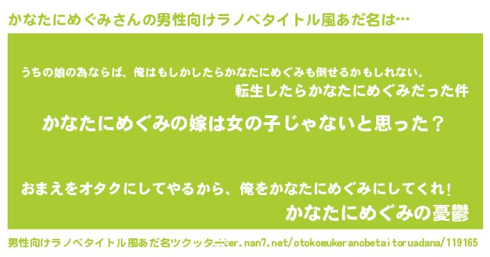 | 女子向けラノベタイトル風あだ名 | 『かなたにめぐみ様がみてる』 |