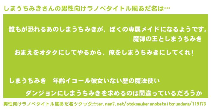 | 胡散臭い通販商品みたいなあだ名 | 『100人中100人が認めたイリジウム磁石…その名も「しまうちみき」』 |