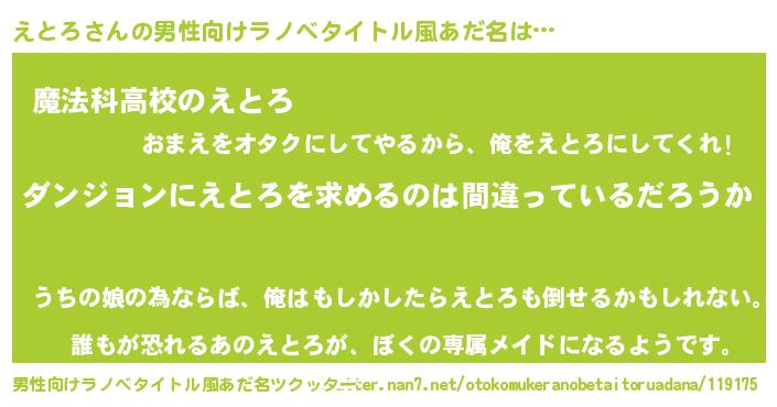 | 胡散臭い通販商品みたいなあだ名 | 『伝統あるサプリメント…その名も「えとろ」』 |