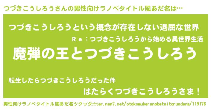 | 意味不明あだ名 | 『住所不定無職つづきこうしろう(8歳)』 |