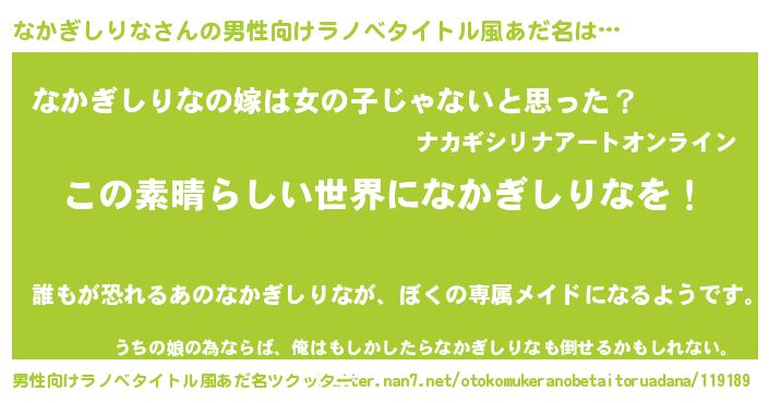 | 意味不明あだ名 | 『住所不定無職なかぎしりな(56歳)』 |