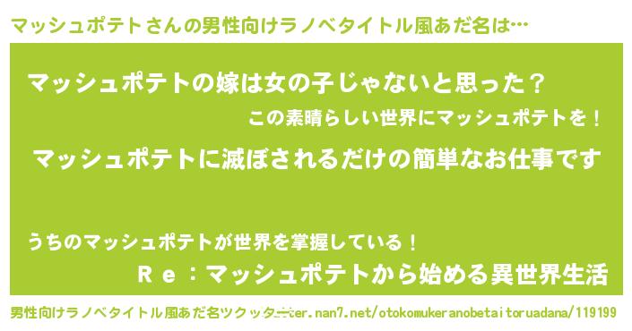 | 女子向けラノベタイトル風あだ名 | 『横柄マッシュポテトと宰相陛下』 |