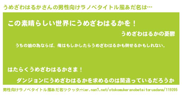 | 女子向けラノベタイトル風あだ名 | 『うめざわはるか伯爵の花嫁』 |