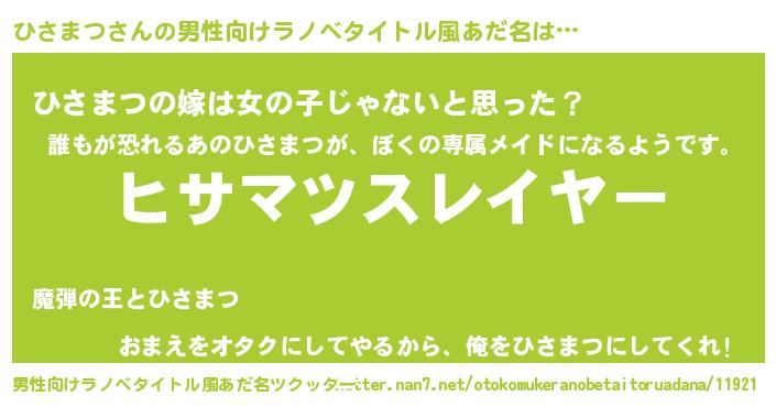 | 胡散臭い通販商品みたいなあだ名 | 『信頼と実績のペンダント…その名も「ひさまつ」』 |
