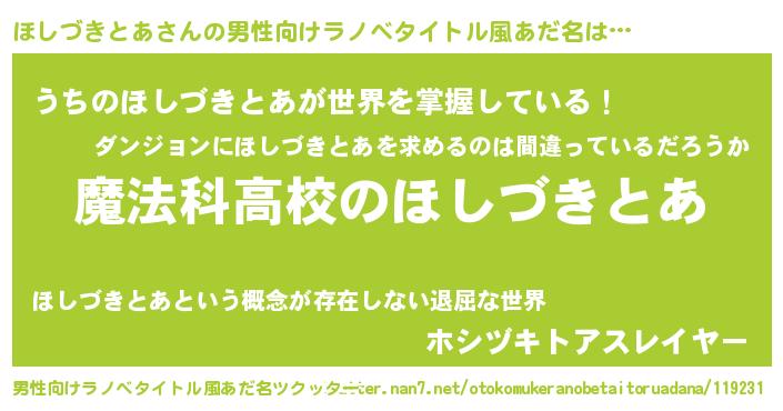 | 女子向けラノベタイトル風あだ名 | 『ほしづきとあアンティーク』 |