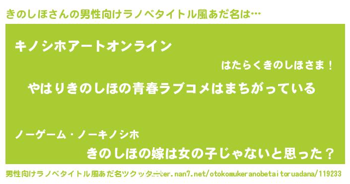 | ファンタジー風あだ名 | 『エターナルキノシホー』『キノフェル』 |