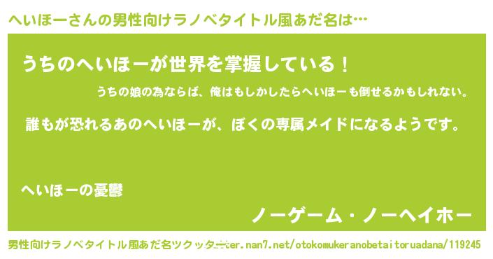 | ヒーロー風カッコイイあだ名 | 『ネオヘイホー』『天空の使者へいほー』 |