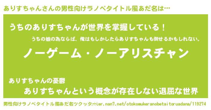 | 意味不明あだ名 | 『眠気覚ましガムありすちゃん味』 |