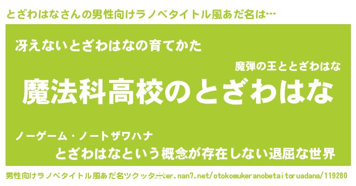 | 女子向けラノベタイトル風あだ名 | 『とざわはななんてお断りですっ。』 |