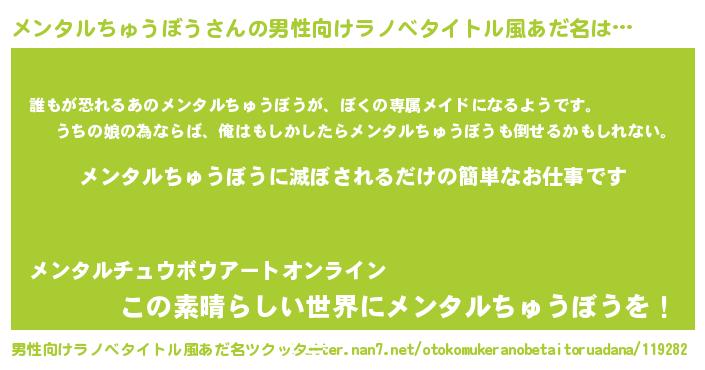 | 意味不明あだ名 | 『永久保存メンタルちゅうぼう』 |