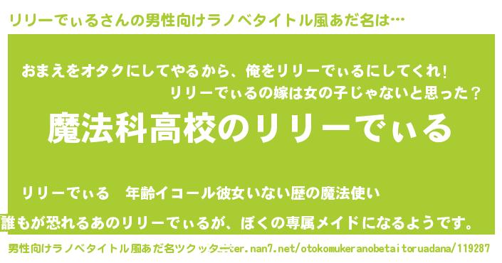 | 女子向けラノベタイトル風あだ名 | 『リリーでぃるなんてお断りですっ。』 |
