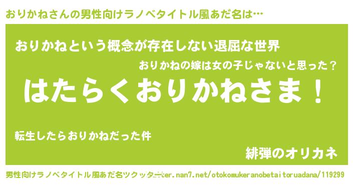| ヘコむあだ名 | 『おりかね(笑)』『おりを』 |