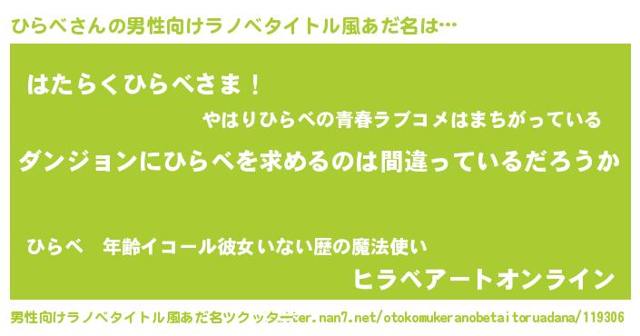 | 胡散臭い通販商品みたいなあだ名 | 『信頼と実績のネックレス…その名も「ひらべ」』 |