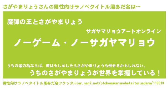 | 女子向けラノベタイトル風あだ名 | 『死神さがやまりょうの再婚』 |