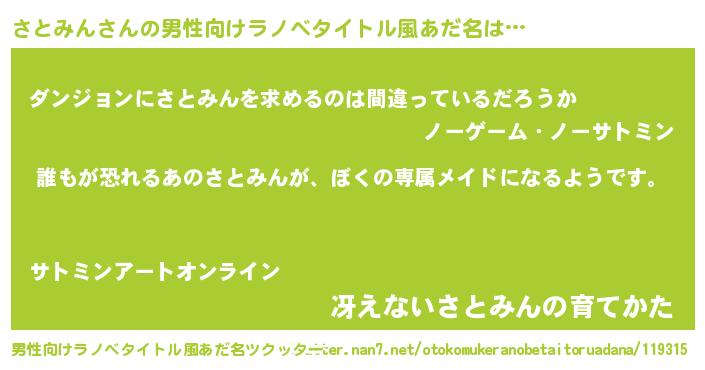 | 女子向けラノベタイトル風あだ名 | 『さとみんの契約王妃』『さとみん恋絵巻』 |