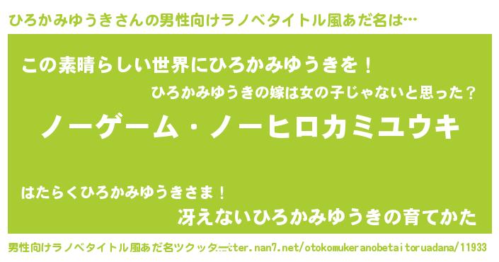 | ヘコむあだ名 | 『ひろっぺ』『ひろかみゆうき(笑)』 |