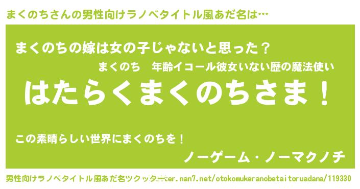 | ヒーロー風カッコイイあだ名 | 『銀牙騎士マク』『慈愛の使者まくのち』 |
