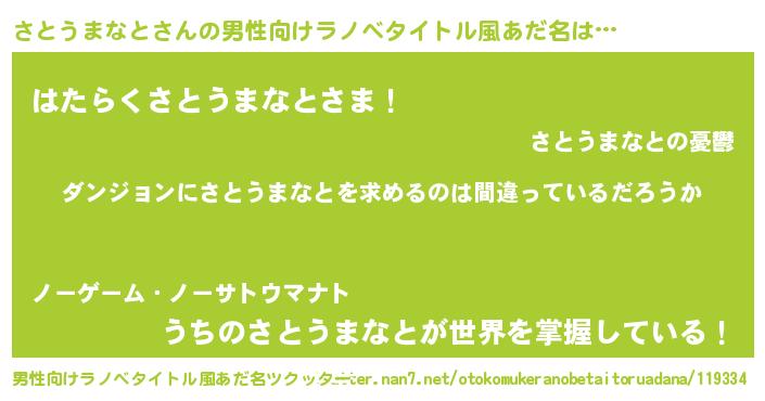 | 女子向けラノベタイトル風あだ名 | 『さとうまなとの卵を拾いまして』 |