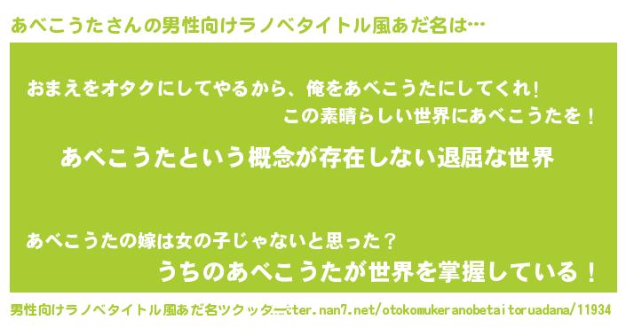 | 女子向けラノベタイトル風あだ名 | 『あべこうたの契約王妃』 |