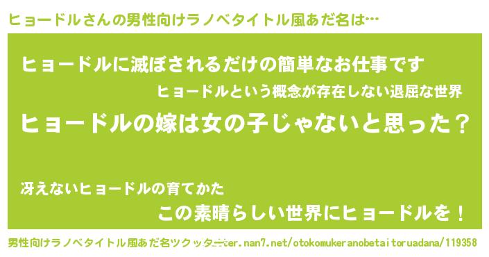 | ヒーロー風カッコイイあだ名 | 『天弓騎士ヒョ』『仮面ヒョダー』 |