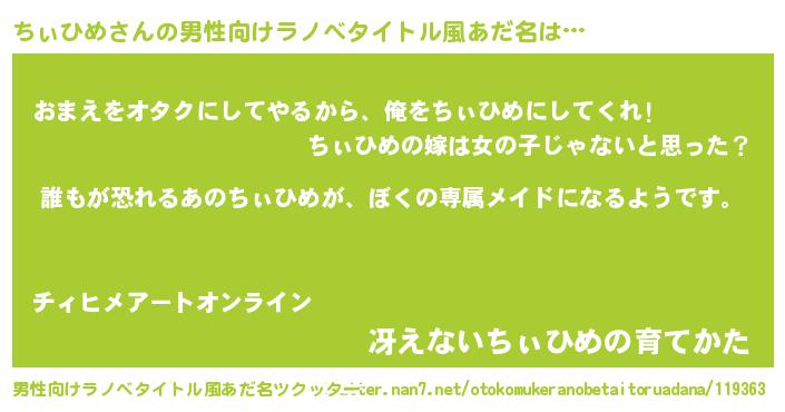| 意味不明あだ名 | 『永久保存ちぃひめ』『ペロリンちぃひめ』 |