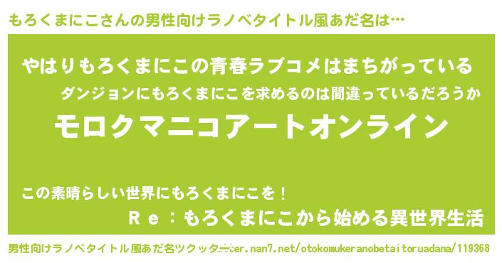 | 女子向けラノベタイトル風あだ名 | 『もろくまにこ姫と円卓の騎士』 |