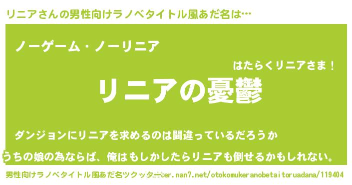 | 女子向けラノベタイトル風あだ名 | 『リニア姫と円卓の騎士』 |