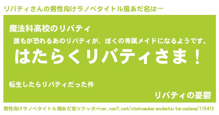 リバティさんの男性向けラノベタイトル風あだ名をツクッター!