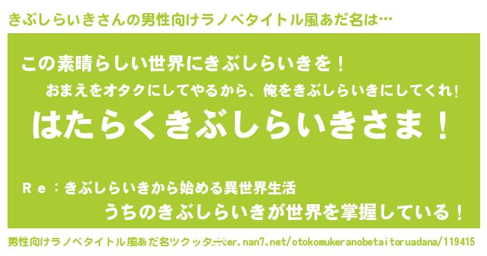 | ヒーロー風カッコイイあだ名 | 『仮面キブダー』『愛の使者きぶしらいき』 |