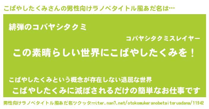 | 女子向けラノベタイトル風あだ名 | 『悪役こばやしたくみに転生したようですが、知った事ではありません』 |