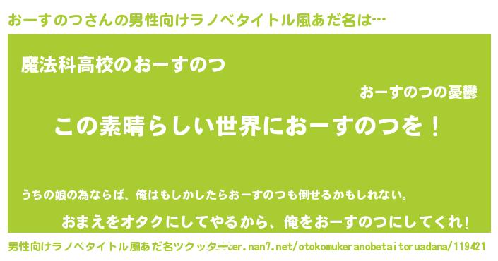 | 女子向けラノベタイトル風あだ名 | 『乙女ゲームの破滅フラグしかない悪役おーすのつに転生してしまった…』 |