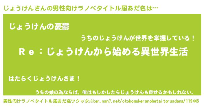 | ヒーロー風カッコイイあだ名 | 『最強戦士ジョウケン』『仮面ジョダー』 |