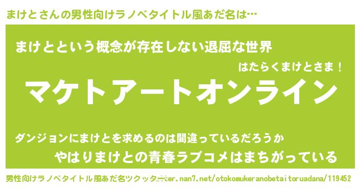 | 女子向けラノベタイトル風あだ名 | 『まけと姫と円卓の騎士』 |