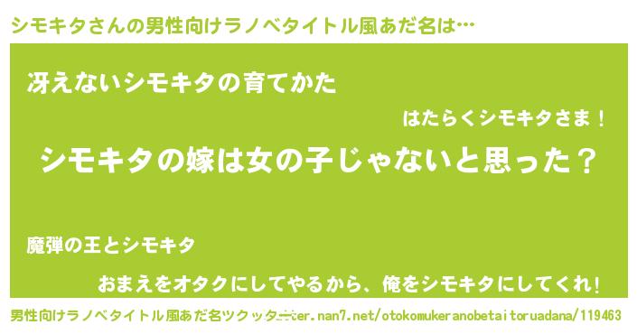 | ヘコむあだ名 | 『シモっちょ』『シモキタ(震え声)』 |