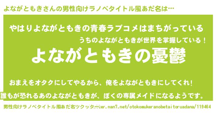 | ヘコむあだ名 | 『よなにー』『牛乳』『よなっ子』 |