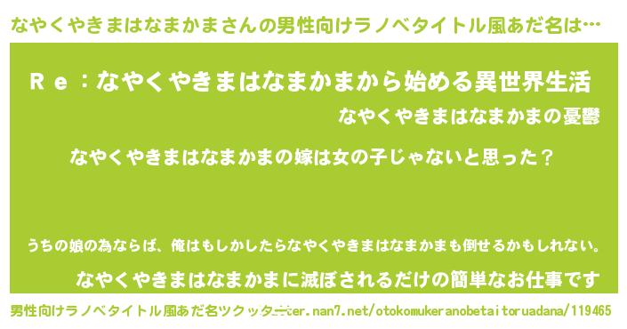 | 女子向けラノベタイトル風あだ名 | 『なやくやきまはなまかま様がみてる』 |