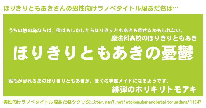 | 女子向けラノベタイトル風あだ名 | 『(仮)ほりきりともあきのやんごとなき事情』 |